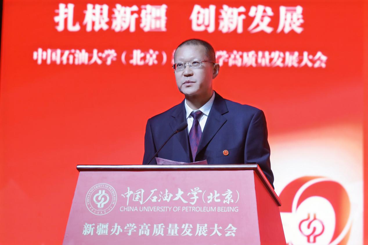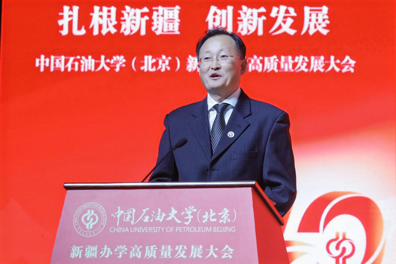 教育部思想政治工作司副司長龐謙在致辭中向長期以來關心、支持中國石油大學(北京)在新疆辦學的新疆維吾爾自治區及克拉瑪依市、在疆企業致以衷心的感謝,向各對口支援高校以及常年奮戰在邊疆教育一線的全體教職員工致以崇高的敬意。他指出,克拉瑪依校區的發展,是新時代高等教育蓬勃發展的生動縮影,也是教育服務國家戰略的典范實踐。他希望學校堅持立德樹人,在培養時代新人上展現新作為;堅持服務需求,在服務高質量發展上實現新突破;建強師資隊伍,在夯實發展基礎上探索新路徑;堅持深化改革,在部區共建、對口支援長效機制等框架內主動作為,在激發辦學活力上塑造新優勢。