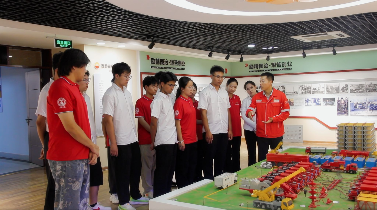 從獨山子到克拉瑪依,實踐團的足跡串聯起一部立體的西陲石油史。在獨山子展覽館,銹紅色的鋼結構外墻模擬鉆井塔架、“創業歲月”展區內泛黃的《獨山子油礦初期勘探報告》手稿、1951年蘇聯援建的蒸餾釜殘件和人拉肩扛運鉆具的黑白照片等,生動再現了70多年前戈壁荒灘的創業場景。“這些實物不僅是歷史見證,更是一代代石油人精神的詮釋。”實踐團感悟道。