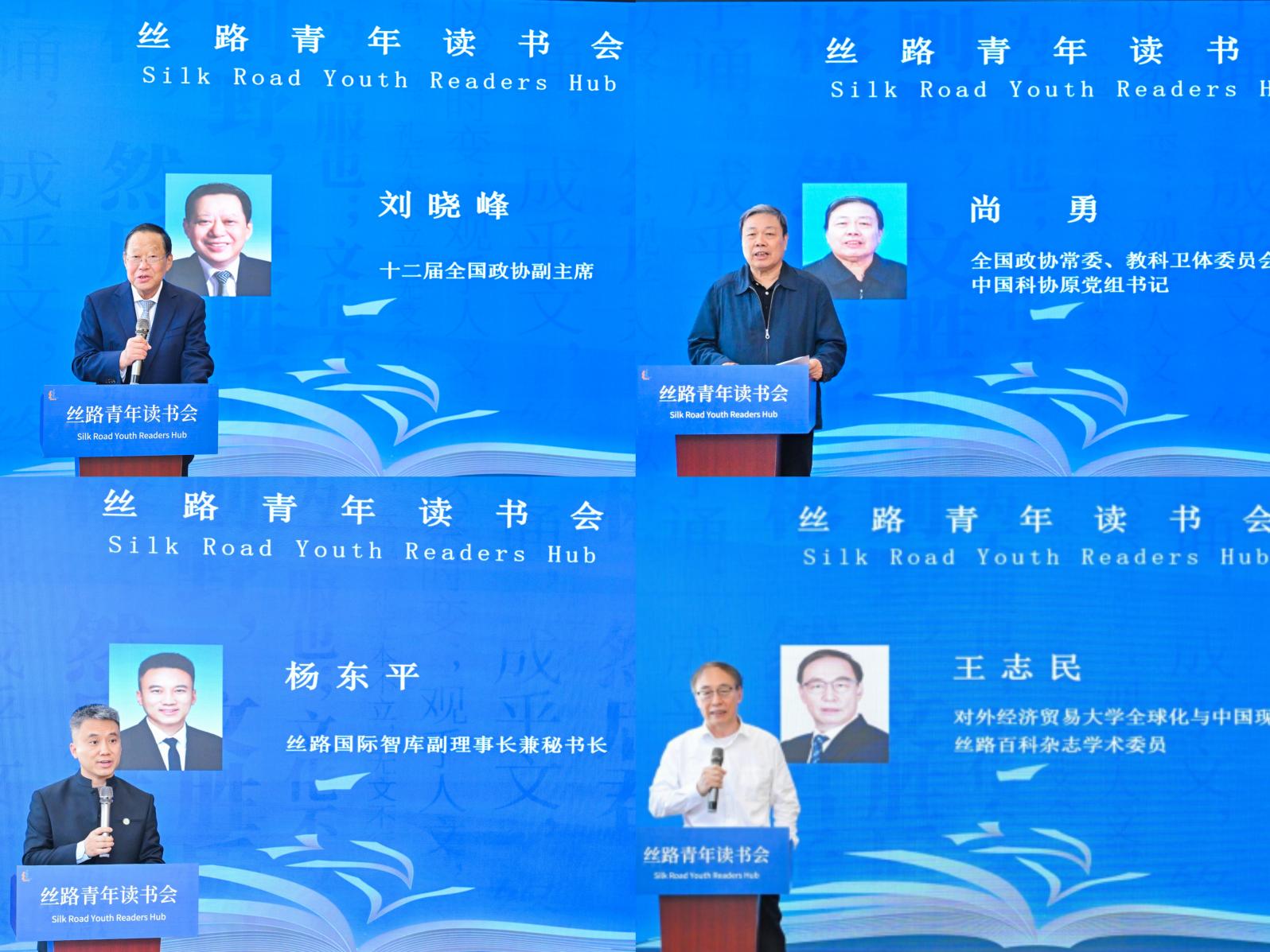 讀書會現場,第十二屆全國政協副主席劉曉峰、全國政協常委尚勇、對外經貿大學王志民教授等嘉賓與青年代表共聚一堂,分享閱讀心得。劉曉峰勉勵青年以開放心態擁抱多元文化,通過閱讀拓寬視野,推動不同文明相互尊重、和合共生;尚勇給出了針對閱讀的建設性建議;絲路國際智庫秘書長楊東平希望青年以閱讀為紐帶,傳承文明、激發創新,共建“云端絲路青年書院”。
