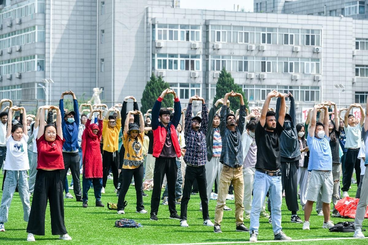 世界武術冠軍劉曉蕾老師以其豐富的體育教學經驗和專業知識,指導學生們練習八段錦,通過體育運動的方式幫助學生調節情緒、釋放壓力,讓學生在運動中感受到身心的和諧與愉悅。