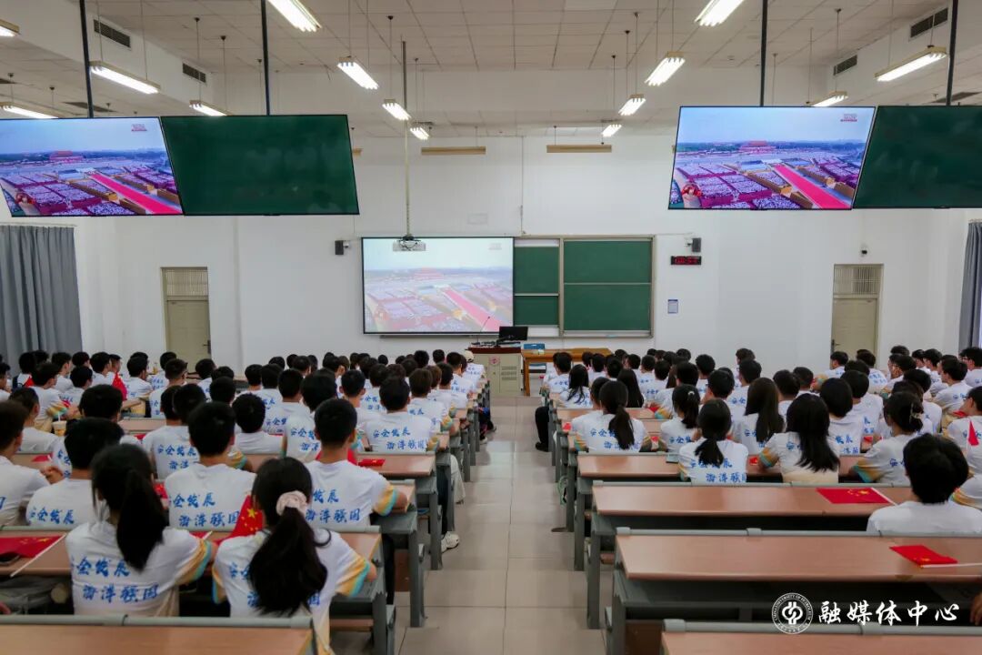 學(xué)校組織師生在學(xué)生活動中心、青年園、第三教學(xué)樓、第四教學(xué)樓等觀看紀念大會直播,校領(lǐng)導(dǎo)在主樓A1502會議室觀看直播。