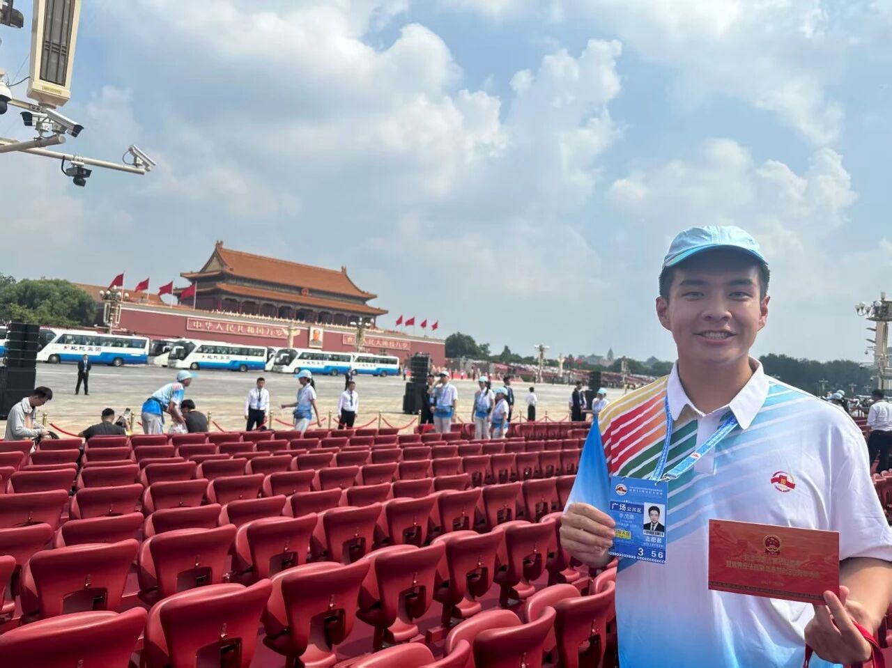 志愿者代表李茂粟表示,2019年,在長安街上匯入國慶70周年群眾游行的洪流,在“艱苦奮斗”方陣中用腳步丈量祖國的輝煌變遷;2021年,在鳥巢與合唱團唱響《沒有共產(chǎn)黨就沒有新中國》,在歌聲里見證百年大黨的風(fēng)華正茂;2022年,在延慶冬奧村與外國友人共繪冰墩墩,用熱忱與堅守為世界展現(xiàn)中國的活力與包容。今天,再一次站在天安門廣場,當(dāng)激昂的旋律在廣場回蕩,歷史的厚重與當(dāng)下的榮光在心中交織,震撼與激動難以言表。四次參與,四次蛻變成長;四份經(jīng)歷,四重信念擔(dān)當(dāng)。鐫刻著不屈與擔(dān)當(dāng)?shù)目箲?zhàn)精神從未遠去,必將在我們一代又一代青年的接續(xù)奮斗中薪火永續(xù)、光耀千秋!