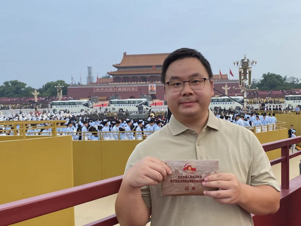 人工智能學(xué)院副院長范媛表示,有幸到天安門廣場現(xiàn)場觀禮,感到十分激動,十分震撼,十分自豪!80年前的今天,中國人民經(jīng)過長達14年艱苦卓絕的斗爭,取得了中國人民抗日戰(zhàn)爭的偉大勝利,宣告了世界反法西斯戰(zhàn)爭的完全勝利。銘記歷史是為了更好地開創(chuàng)未來,站在新的歷史起點,我們既要銘記“落后就要挨打”的深刻教訓(xùn),更要堅定“強國有我”的使命擔(dān)當(dāng)。新的征程,人工智能學(xué)院將堅持以“科研報國”為引領(lǐng),聚焦能源行業(yè)智能化轉(zhuǎn)型需求,推動AI技術(shù)與石油石化場景深度融合,引導(dǎo)學(xué)生厚植家國情懷,培養(yǎng)更多“懂技術(shù)、有擔(dān)當(dāng)”的復(fù)合型人才,為強國建設(shè)、民族復(fù)興貢獻中石大力量!
