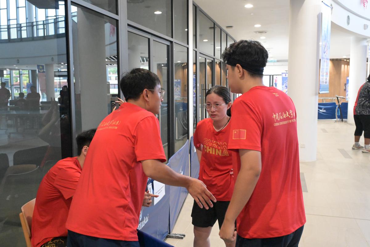 在為期兩天的比賽中,中石大體育代表團頑強拼搏,斬獲佳績,其中羽毛球隊在參加的5場團體比賽中獲得全勝,取得該項目冠軍;足球隊以2:0戰勝馬來西亞高校足球強隊,以0:0逼平菲律賓高校代表隊;乒乓球隊以大比分戰勝泰國、菲律賓代表隊。
