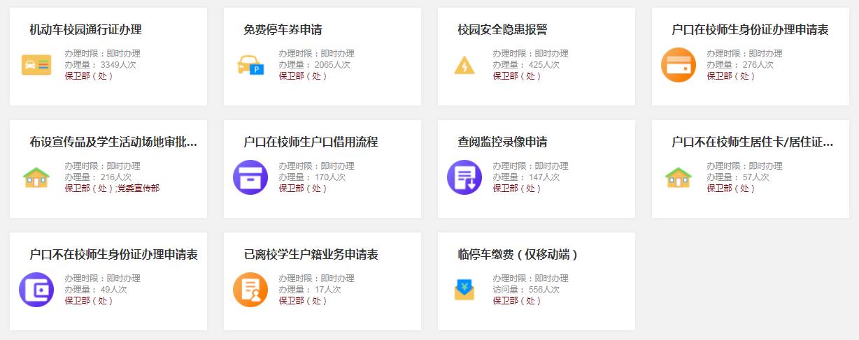 全面梳理業務工作流程,穩步推進“全業務”線上辦理,實現“讓數據多跑路、讓師生少跑腿”。截至目前,共上線安全、戶籍、交通、數據維護4大類13條流程,辦理各項業務8000余人次,處理師生員工報告的隱患問題300余條,完成戶籍業務辦理400人次;幫助師生查閱監控錄像110余次,挽回經濟損失數萬元;車證辦理周期大幅縮短,由過去線下辦理3個月縮短為線上3周完成,有效增強了師生的獲得感。