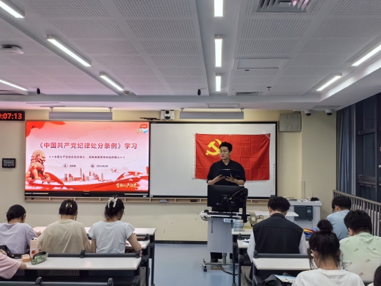 各黨支部結合自身特點和師生實際,把黨紀學習教育與日常學習工作緊密結合起來,對照檢視學。教職工黨員結合師德師風、教育教學、科學研究等,學生黨員圍繞學風考風、評獎評優、學術規范等,切實把自己擺進去、把工作擺進去、把職責擺進去,認真查找苗頭性、傾向性問題,結合具體案例進行剖析,始終保持黨員先進性。