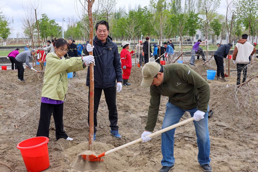 中石大克拉瑪依校區(qū)開展“十載育人綻芳華,植夢油園啟新程”校友林和援建林植樹活動