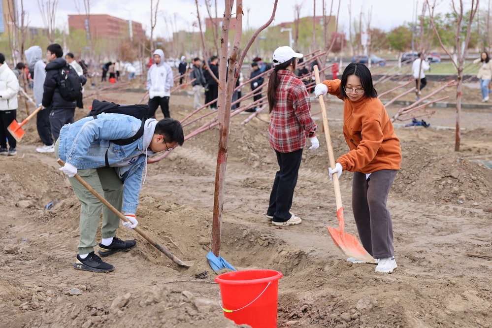 4月20日上午,克拉瑪依校區(qū)在校園內(nèi)組織開展“十載育人綻芳華,植夢油園啟新程”校友林和援建林植樹活動。此次校友林和援建林規(guī)劃面積1.8畝,其中校友林種植紅葉海棠、紫葉稠李、蘋果樹、山楂樹、銀新楊等樹苗600余株,援建林種植胡楊樹苗400余株,校區(qū)領(lǐng)導(dǎo)、教師代表、校友代表、學(xué)生代表等300余人參加活動。