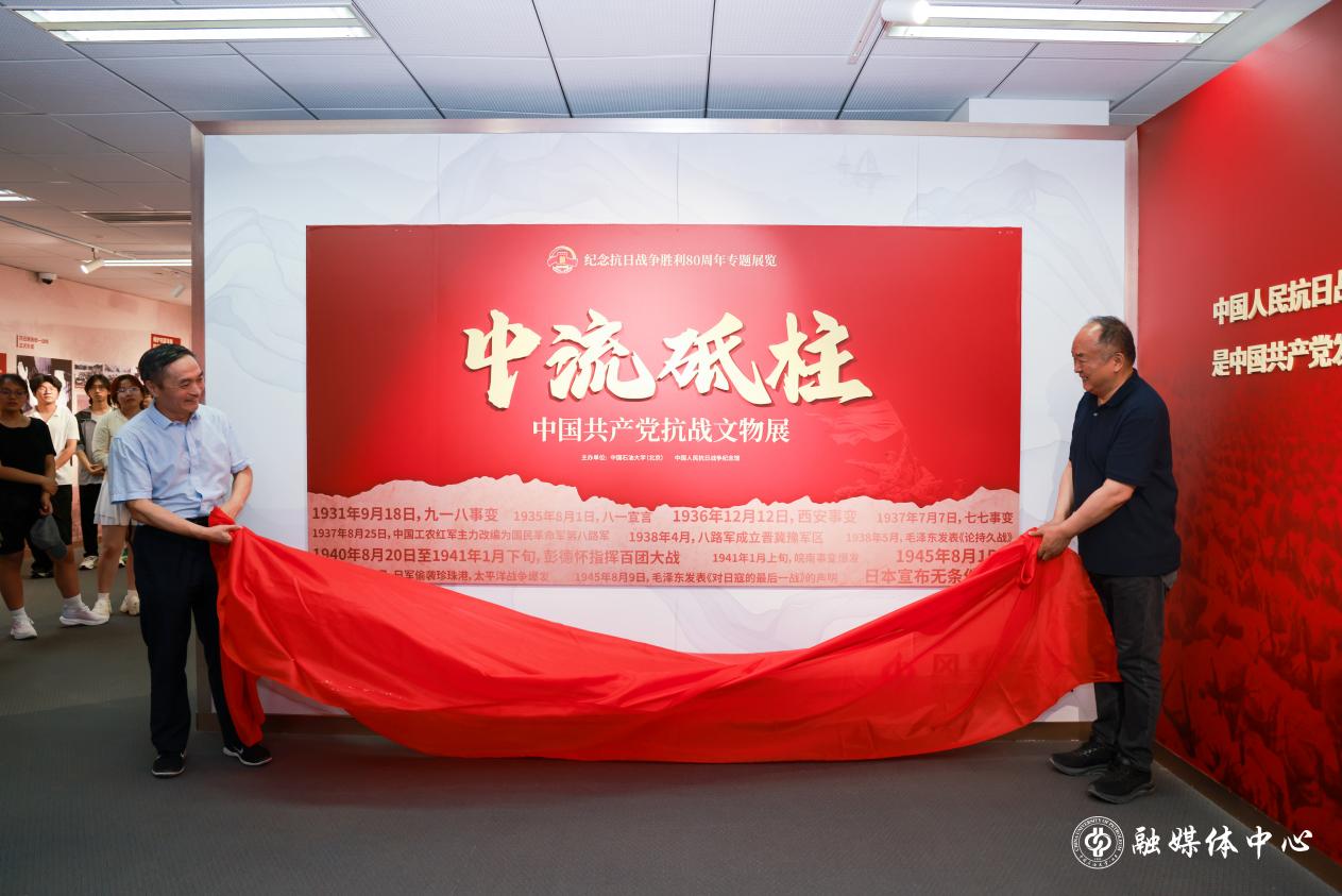 5月29日,由中國石油大學(北京)與中國人民抗日戰爭紀念館聯合主辦、中石大體育與人文藝術學院承辦的“中流砥柱——中國共產黨抗戰文物展”在主樓藝術展廳揭幕開展。此次展覽以紀念中國人民抗日戰爭暨世界反法西斯戰爭勝利80周年為主題,將中國人民抗日戰爭紀念館提供的300余幅珍貴文物圖片設計展出。展覽共分五個部分,以物證史,生動展現了中國共產黨在全民族抗戰中的中流砥柱作用。中石大副校長張廣清,學校相關職能部門和學院負責人及師生代表近百人參加活動。