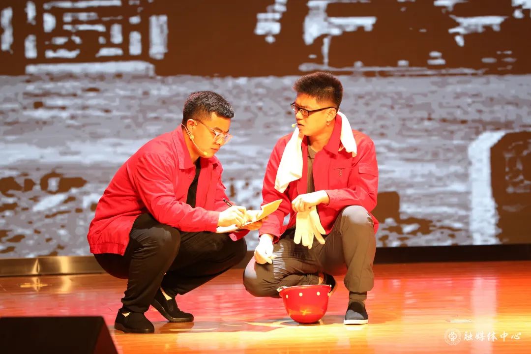 激昂的管弦樂(lè)合奏之后,來(lái)自各學(xué)院的青年師生以故事講述、情景再現(xiàn)、音樂(lè)舞蹈短劇等形式,分享了青春奮斗的故事。