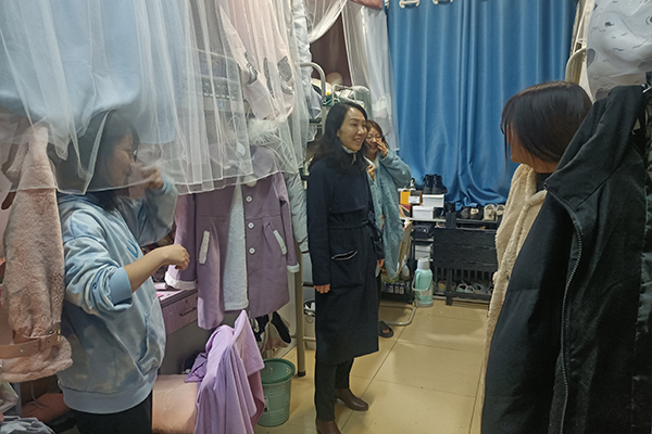 24日晚,王茹及學院本科生班主任、輔導員等前往學生潤杰公寓,深入學生宿舍,與各班班長及學生交談,了解學生的課余生活和學習情況,增進學生和班主任之間的溝通交流。