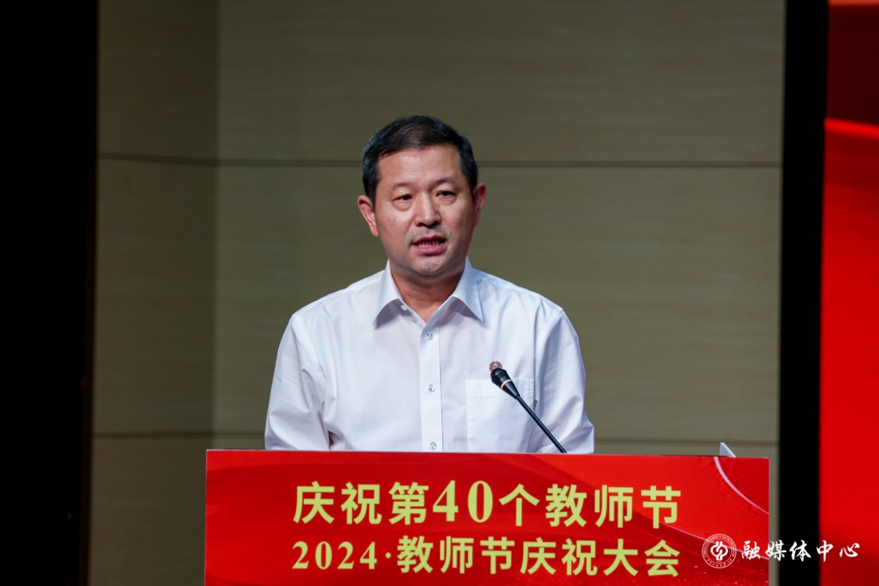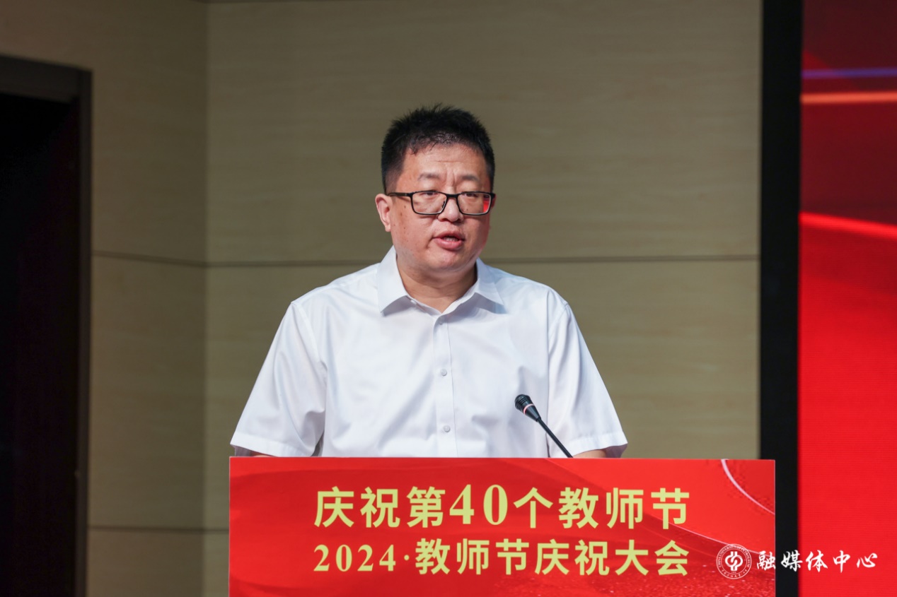 王同奇代表學校黨委向全校教師提出了殷切期望。他指出,學校正處于搶抓戰略機遇和推動高質量發展關鍵期,面臨時代使命更重、辦學空間增大、發展賽道拓寬的新形勢。希望廣大教師:一是要堅定信念守初心,擔當“大使命”。將胸懷天下的價值理想追求與實現中華民族偉大復興結合起來,將教育家精神融入落實立德樹人根本任務,把“躬耕教壇、強國有我”落到實際行動中,強化對青年學生的政治引領、價值引領,確保黨的事業和社會主義現代化強國建設后繼有人,在至誠報國的“大我”追求中實現個人理想抱負。二是要明德修身長才干,砥礪“大德行”。要自覺砥礪品行、用優良德行,樹立教師的崇高形象,引導學生走好成長的每一步。要苦練育人本領,樹立終身學習的理念,以使自己擁有源源不斷的力量源泉,時刻為學生提供鮮活的成長清泉。三是要躬體力行勇擔當,展現“大作為”。站在知識發展前沿,遵循教育規律和人才成長規律,在潛心教書育人、勇攀學術高峰、弘揚人間正道上彰顯擔當、展現作為,在推動學校事業高質量發展的新征程上開拓新路、再創佳績。