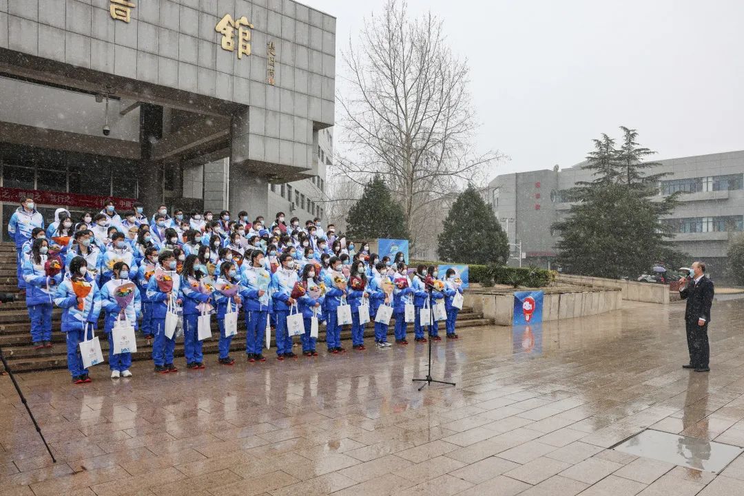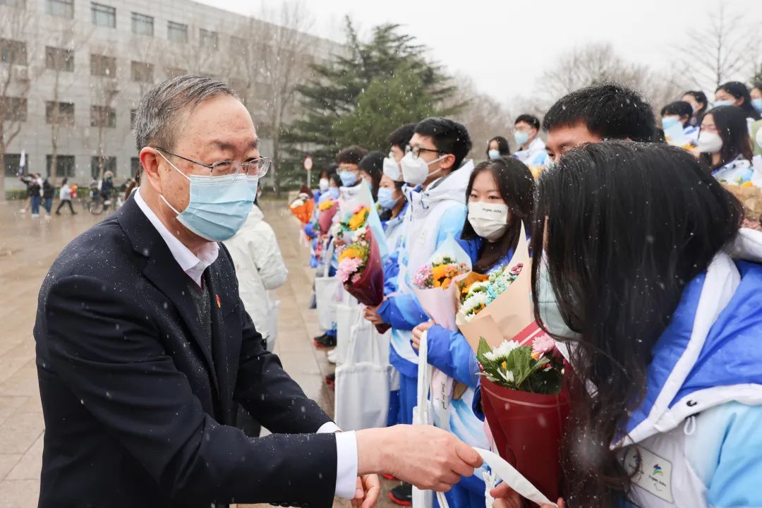 陳峰向歸來的志愿者表示親切問候,他說,在這堂冰雪上的“大思政課”中,中石大志愿者踐行了“請黨放心,冬奧有我”的錚錚誓言,是“最有執行力、最有戰斗力、最有愛國情、最有榮校志”的中石大青年代表。他表示,同學們生逢其時,能夠服務冬奧會、冬殘奧會很幸運,希望同學們帶著這份收獲和榮耀,在未來的人生道路上譜寫更多精彩華章。