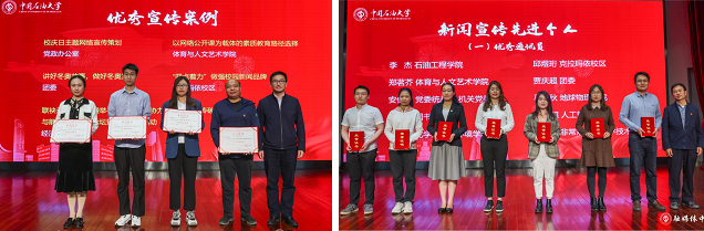 陳峰、韓克飛及相關(guān)職能部門負(fù)責(zé)人為新聞宣傳工作先進(jìn)單位代表、優(yōu)秀宣傳案例代表、先進(jìn)個(gè)人代表、優(yōu)秀新聞作品獲獎(jiǎng)代表以及獲評(píng)校園文化建設(shè)優(yōu)秀項(xiàng)目代表等頒獎(jiǎng)。