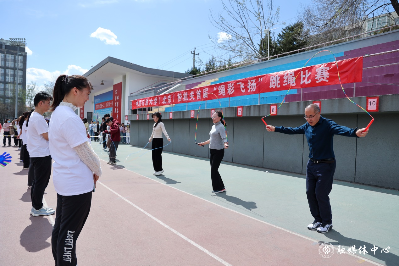 4月1日,首屆校機關(guān)“繩彩飛揚”跳繩比賽在紅旗操場火熱開賽。本次活動以“繩彩飛揚,活力機關(guān)”為主題,旨在通過趣味運動強健體魄、凝聚合力,吸引了來自機關(guān)各部門的200余名教職工參與,現(xiàn)場氣氛熱烈,掌聲與歡呼聲此起彼伏。