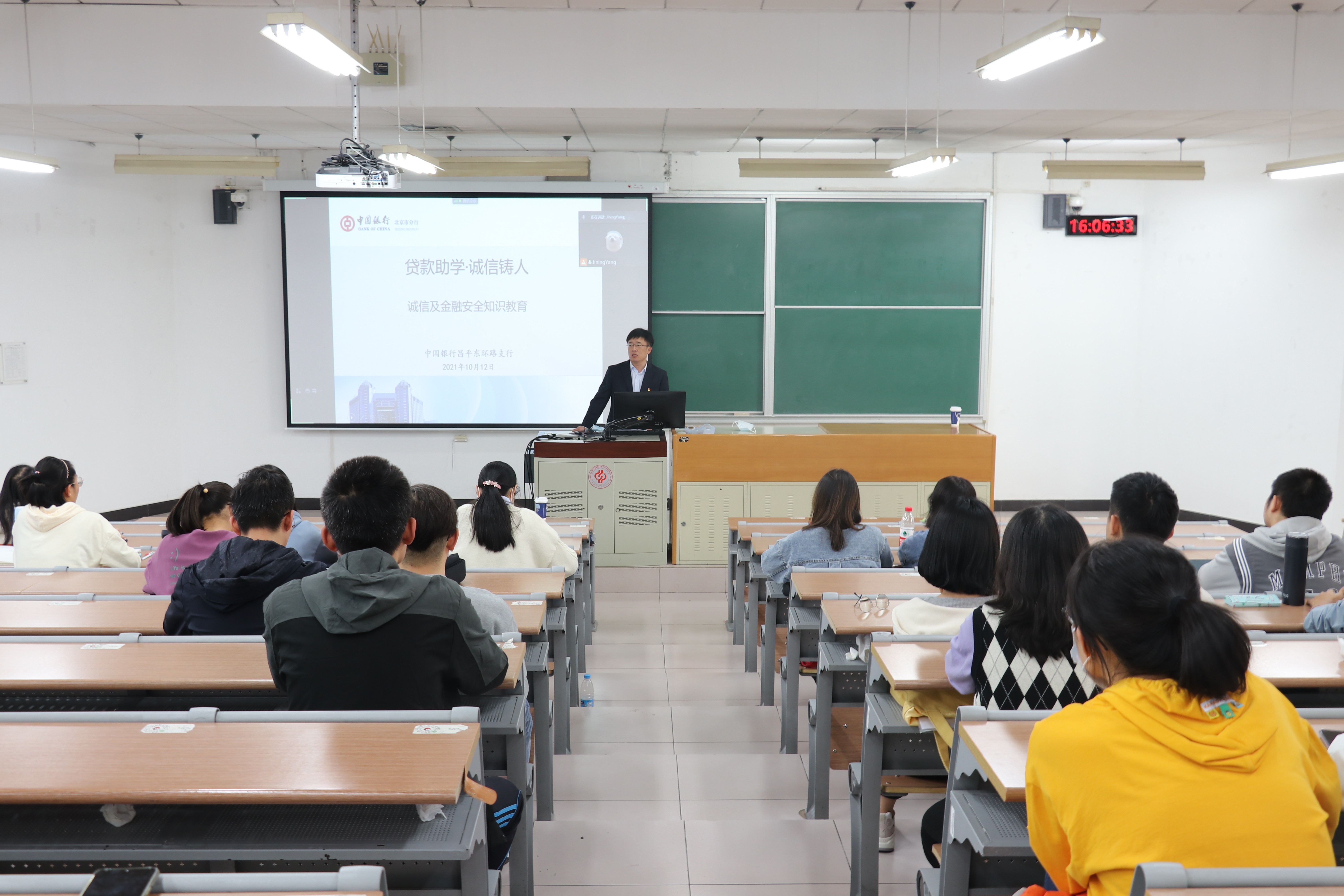 為進一步貫徹落實《財政部 教育部 人民銀行 銀保監會關于進一步完善國家助學貸款政策的通知》文件精神,加強校園地國家助學貸款政策宣傳力度,做好家庭經濟困難學生的助學貸款工作,10月12日,中國石油大學在第三教學樓舉辦2021年校園地國家助學貸款政策暨金融安全知識宣講會,會議同步進行線上直播。中國銀行昌平支行消費金融部主任周浩、個人貸款客戶經理李炳欣及相關工作人員,中石大學生資助管理中心工作人員及200余名意向申請校園地貸款的學生參加會議。