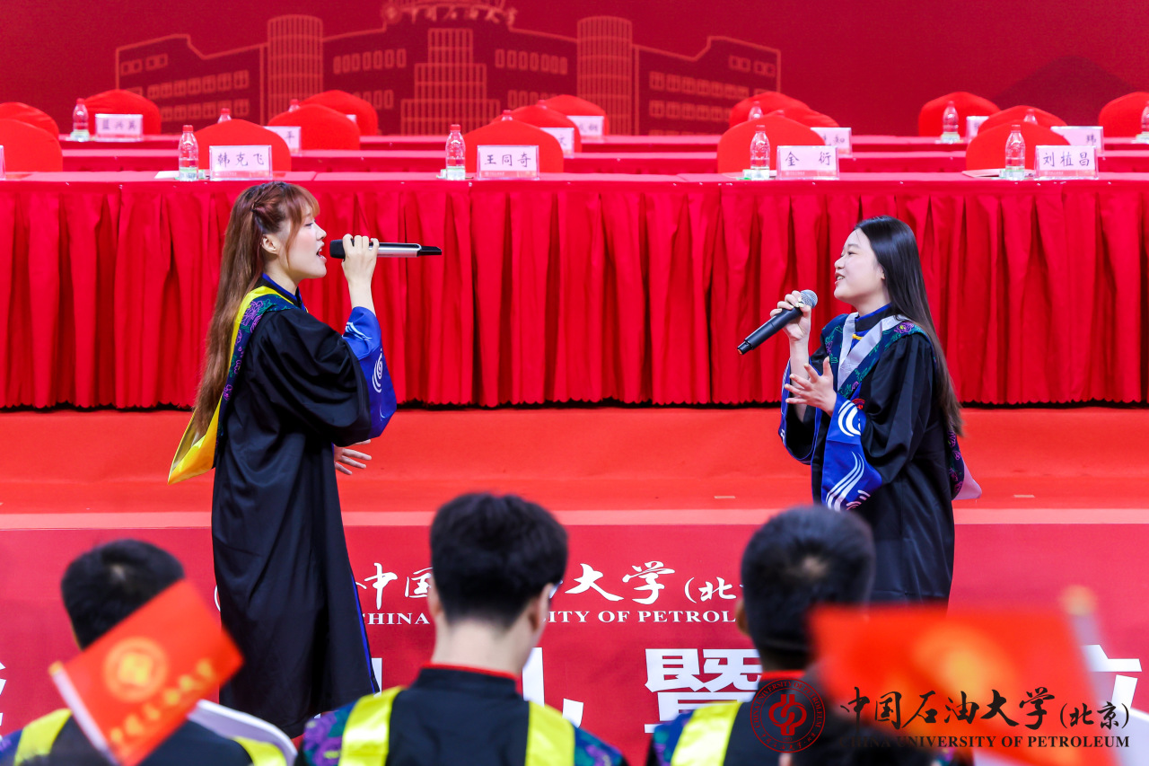 畢業本科生代表、克拉瑪依校區張茂沅,畢業研究生代表、校本部新能源與材料學院博士生李響分別發言,表達了對母校、師長的感恩和對同窗、朋友的不舍,分享了學習和科研中的感悟,表示將秉持家國情懷,志不求易、事不避難,以奮斗之姿挺膺擔當,鐫刻中石大人的時代勛章。