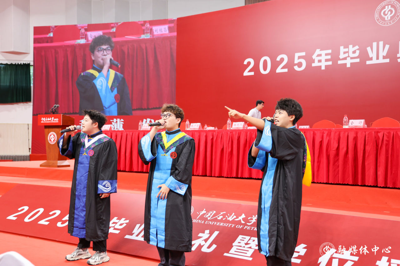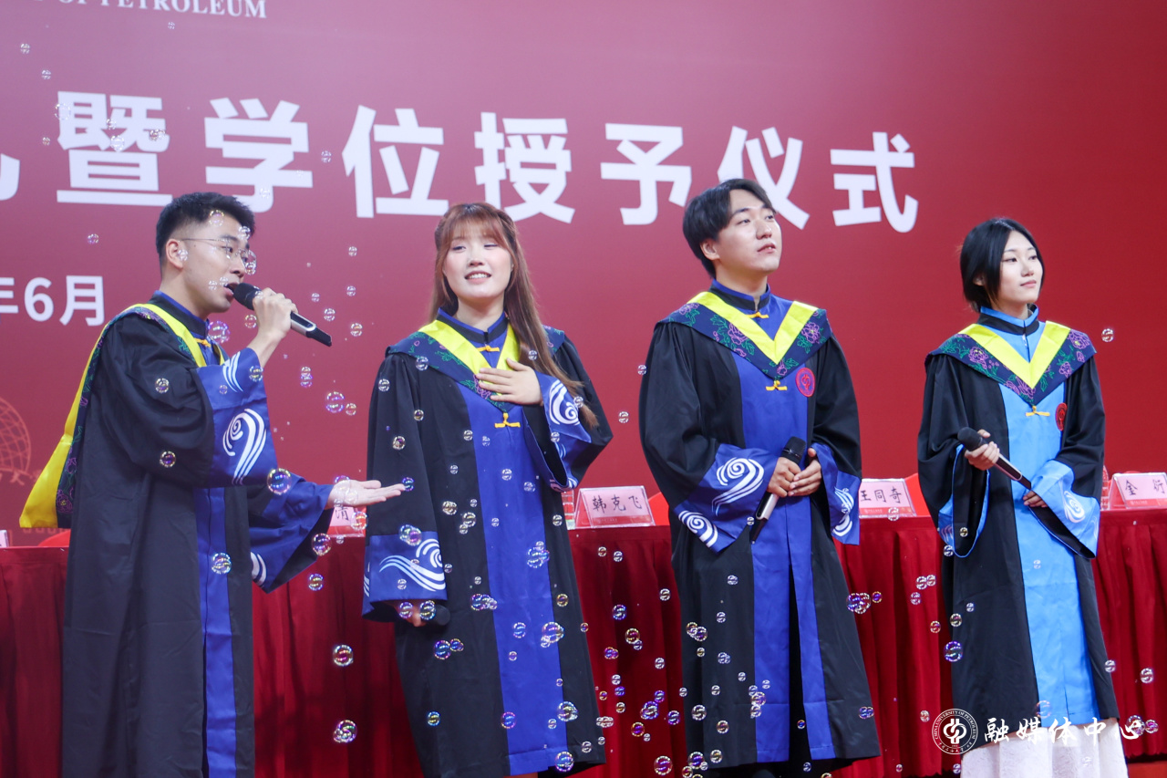 典禮在《我為祖國獻石油》的嘹亮歌聲中圓滿落幕。典禮結束后,學校舉行了2025屆畢業生學位授予儀式。