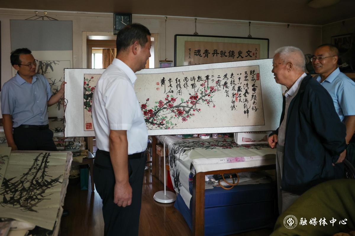 王同奇代表學校向兩位老教師贈送了鮮花和校徽套裝。余世誠老師特意繪制一幅紅梅圖獻禮學校,表達一位教育工作者對黨的教育事業的赤誠熱愛和對第四十個教師節的衷心慶賀。