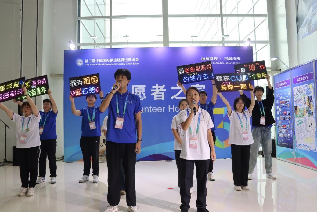 第三屆中國國際供應鏈促進博覽會(以下簡稱“鏈博會”)于7月16日至20日在北京中國國際展覽中心(順義館)舉辦。在共青團北京市委員會、北京市志愿服務聯合會的協調安排下,中石大選派41名志愿者和1名帶隊老師參與鏈博會服務保障工作,累計志愿服務時長達2215小時。