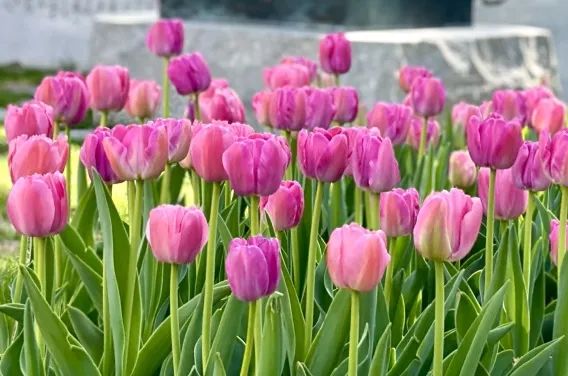 夢溪園中的郁金香粉似彩霞黃比驕陽,明麗嬌艷 馥郁清秀,這滿眼的繁花送給你,留下這一年的絢麗多彩。