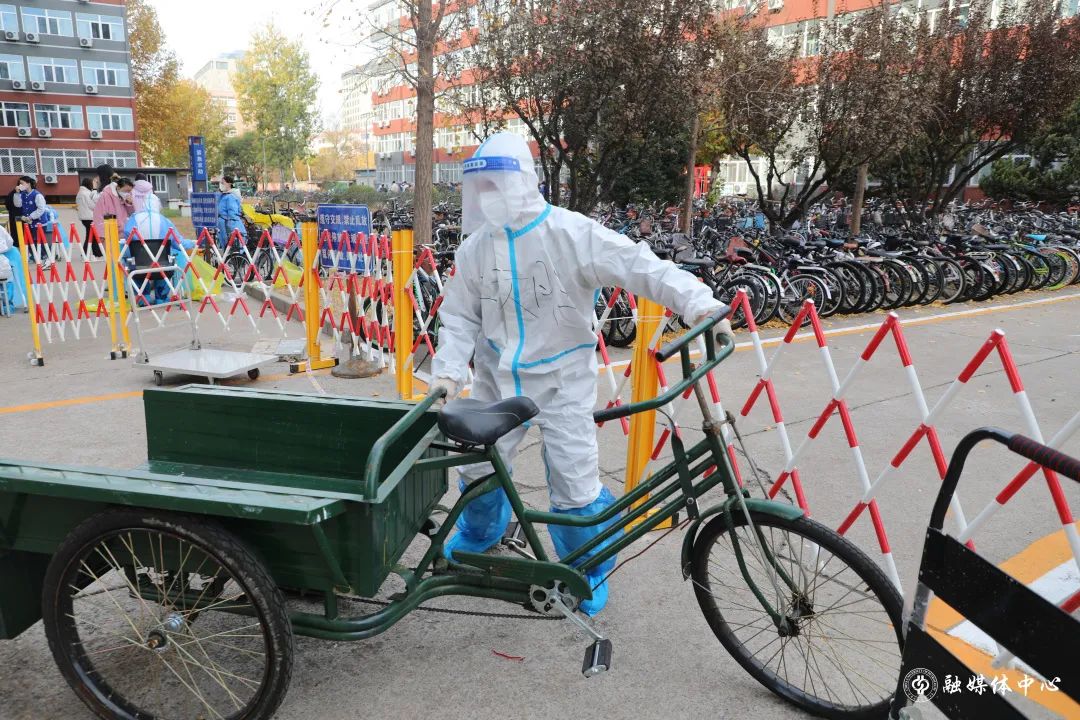 按照管控要求,這幾天每棟樓的宿管不能出樓,像送物資、清垃圾、消殺等工作,王師傅都要參與。一輛小三輪車,每天陪伴著王師傅穿梭于各棟樓宇之間。