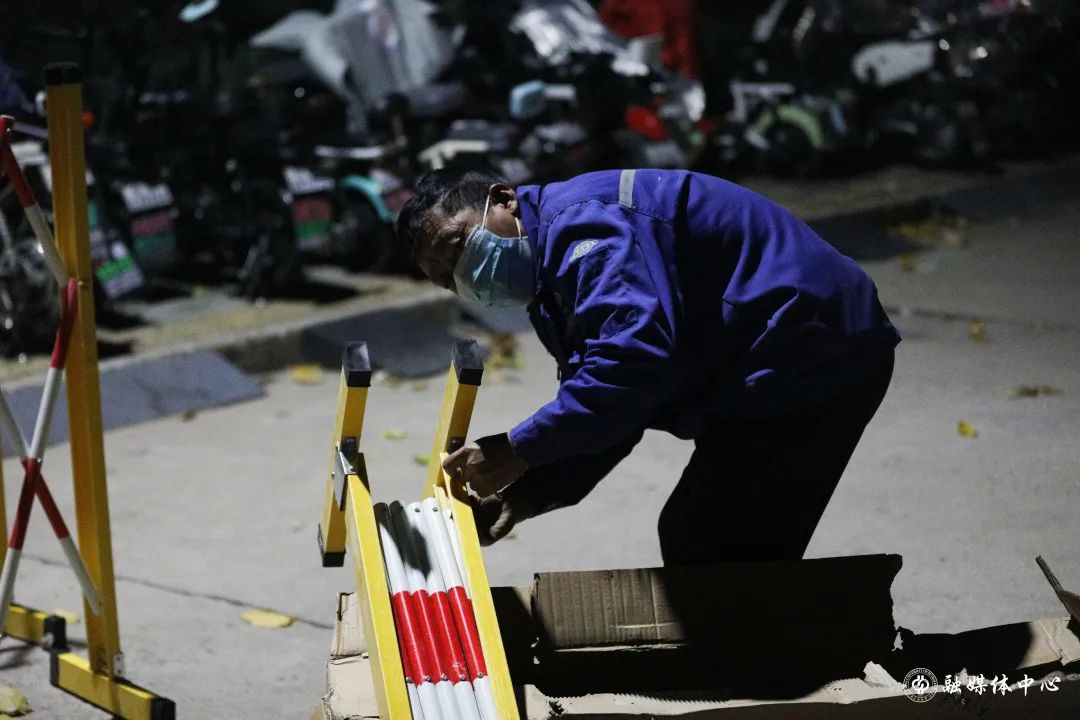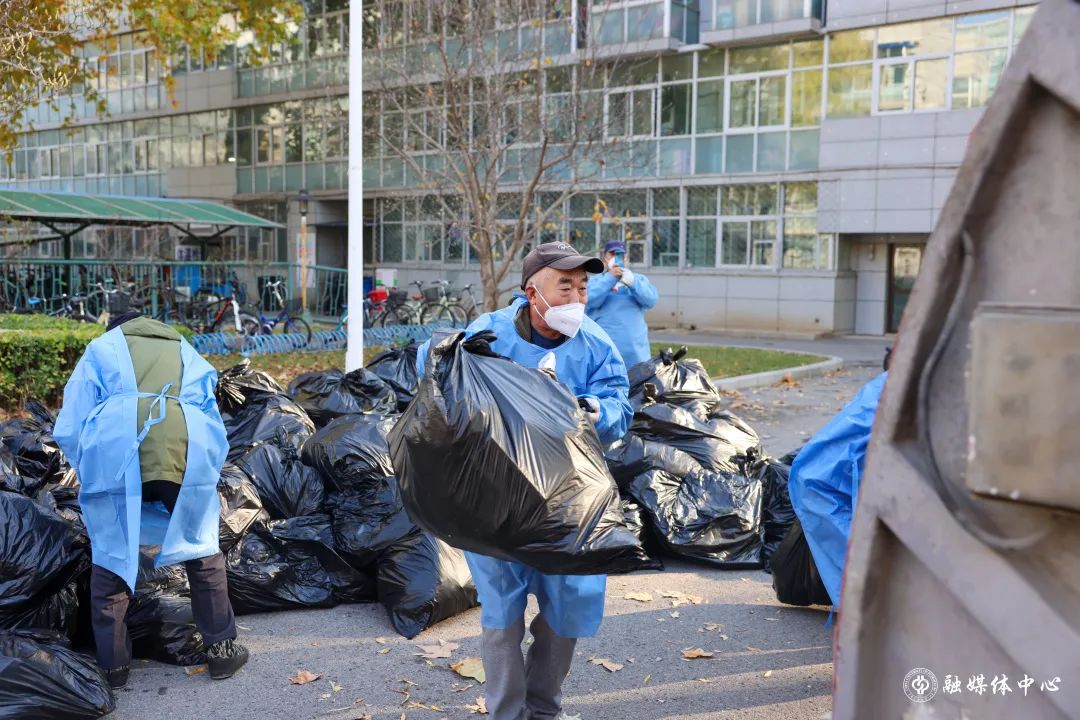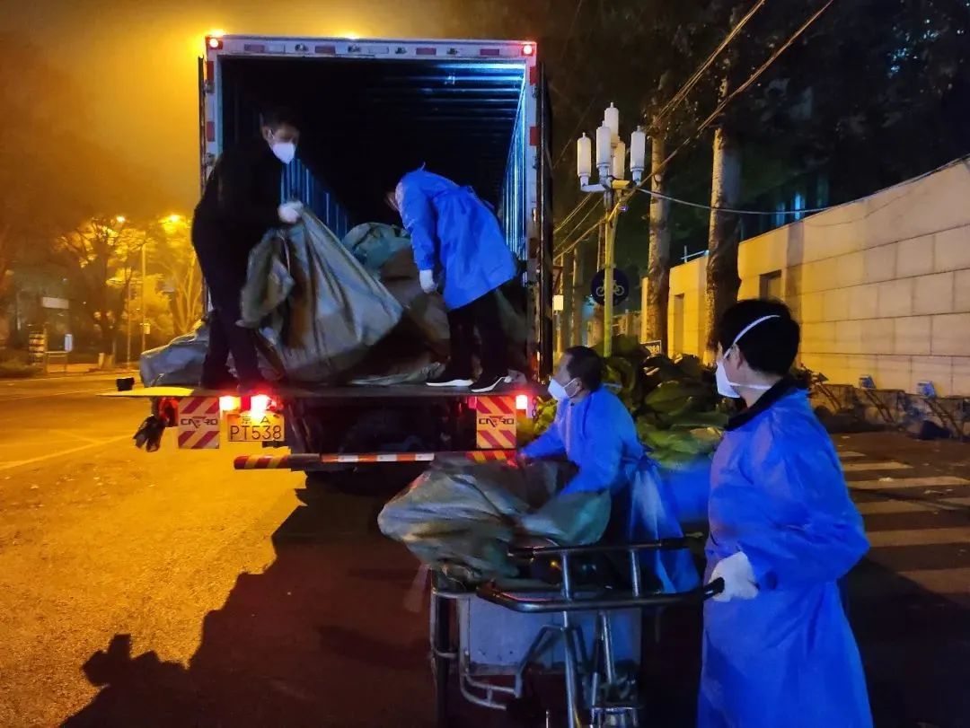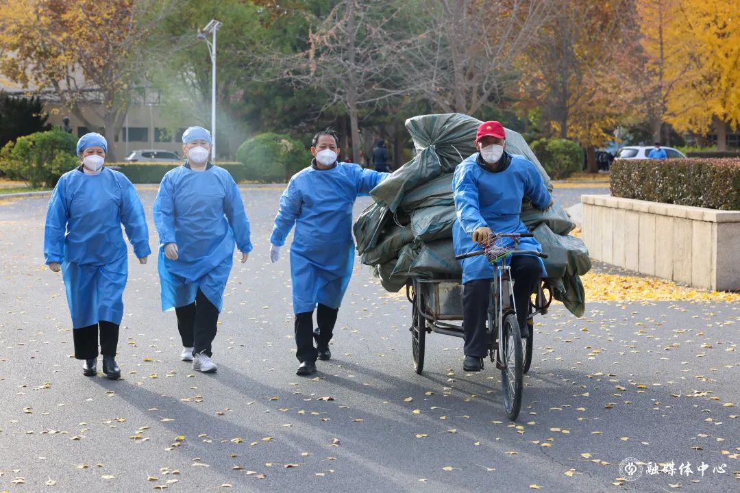 11月10日深夜12點至凌晨2點,公寓管理服務中心組織10多名員工卸運床上用品400多套,用僅有的4輛小三輪車,一趟一趟從東門搬運至體育館。12日晚11點至凌晨2點,20多名員工搬運防疫物資,凌晨2點半至4點半,冒著大雨到東校園五教,搬卸學校新購置的400套備用床。他們都已不年輕,有的兩鬢斑白,有的腰腿不好,但任務面前沒有人退縮。他們每日清理公寓樓內涉疫垃圾,并用專業用具清運出樓、及時消毒。
