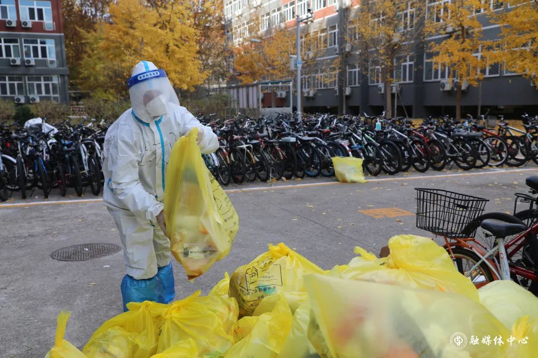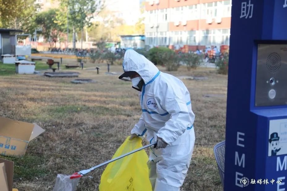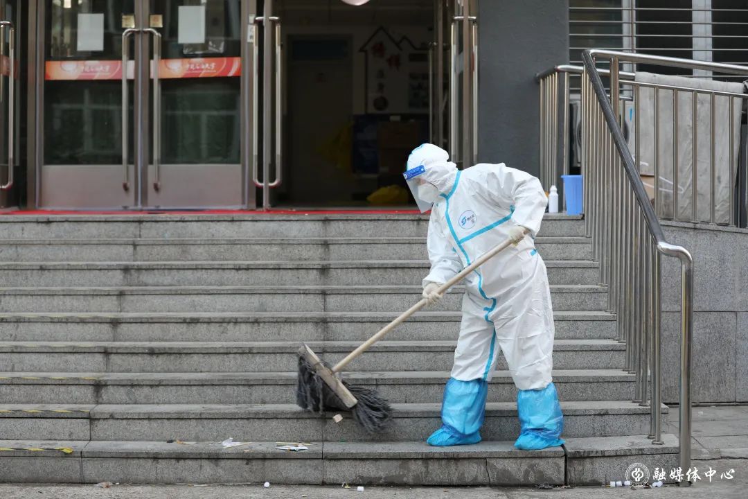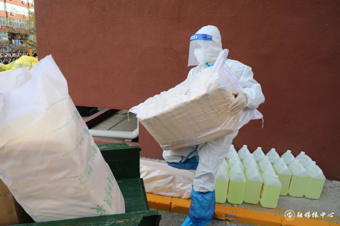 每天往外運送1300多袋的垃圾,吃飯剛吃一半,穿起衣服就往外清理垃圾,來不及穿上厚衣服,套上隔離服就往外沖。