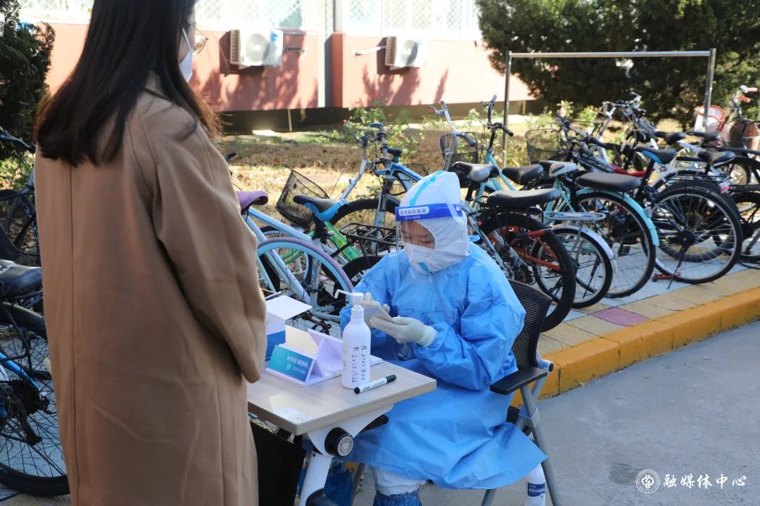 進(jìn)入東校園核酸采樣組第一次做大白,僅穿防護(hù)服就需要一個多小時,到現(xiàn)在15分鐘就能整裝出發(fā),已經(jīng)記不得上下跑過多少層樓,汗透過多次,卻記得同學(xué)們每一次真誠的關(guān)心。“謝謝芥芥(jie jie)老師!”“姐姐?學(xué)生跟你們老師都這么親啊?”同組采樣的中醫(yī)院大夫驚訝道。“嗯,可親了!”鄭老師掩飾不住幸福地回應(yīng)著。