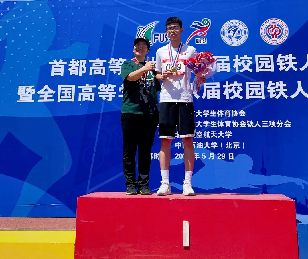 劉瑞恒是班里的文體委員,他曾代表學(xué)校參加2021年全國大學(xué)生鐵人三項邀請賽,獲小輪車兩項全國第二名,北京市第一名。在2022年首都高校運(yùn)動會800米中,也取得了不錯的成績。