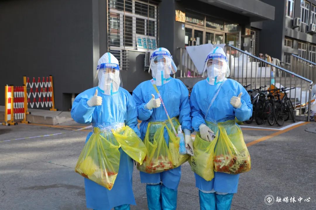 得知東校園老師送餐壓力巨大,學(xué)生黨員們主動報名分擔(dān)送餐任務(wù)。“大白”包裹下是一張張還略顯稚嫩的臉龐。