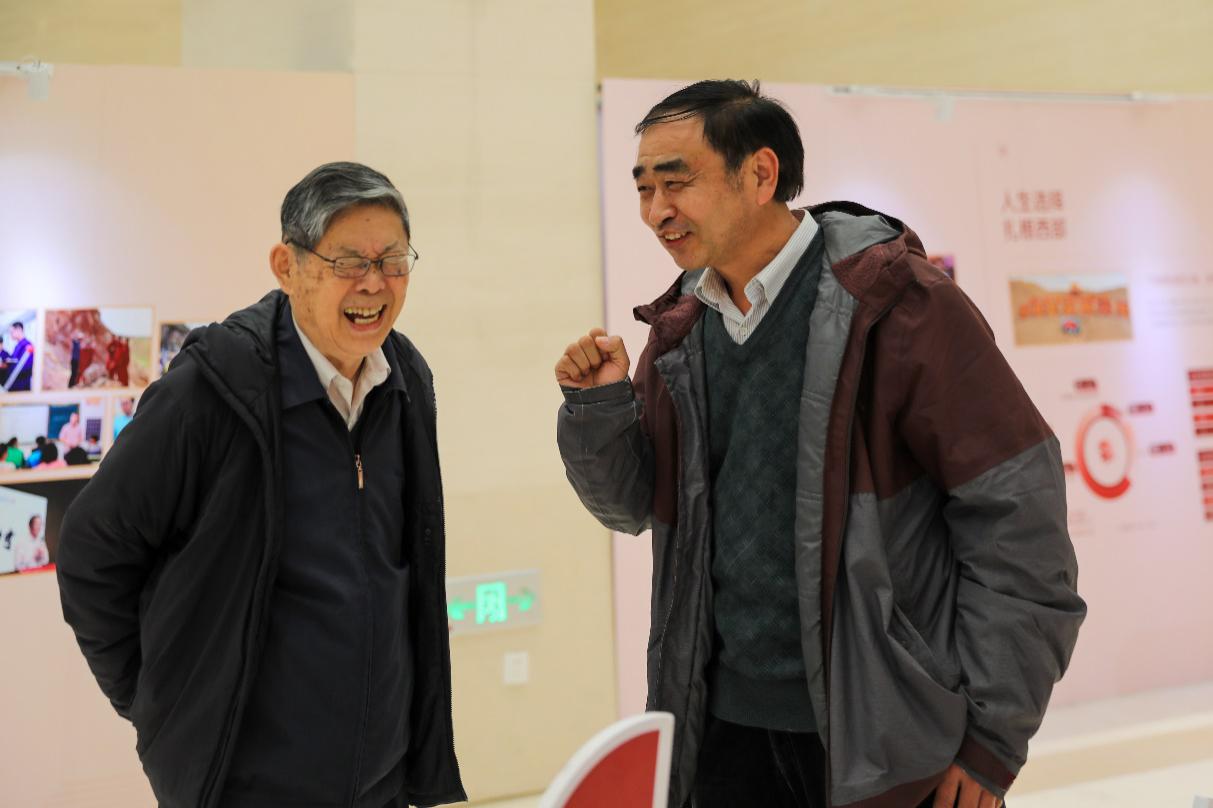 展板的初稿出來以后,我們第一時間發給啟民校友審核。考慮到老人家已經八十多歲高齡,身體狀況也不是很好,我們以為他從總體上把把關就行了,沒想到他真是擁有鋼鐵般意志的“新時期鐵人”,字斟句酌,甚至一些重要表達在圖板上的位置、顏色,高一點還是低一點,在左邊還是在右邊,他都一一審閱,并囑咐我們如果有可能的話,把修改后的版本再發給他看看,說得非常客氣,但是態度非常認真。我們真的很難相信,這樣一位譽滿天下的石油行業扛鼎人物,會給我們的展覽內容提出如此細致入微的指導。見到啟民校友之前,滿心以為這樣一位認真的老人必定很嚴苛,但見了面才發現他十分平易近人,是一個性格開朗、待人親切的老爺爺。
