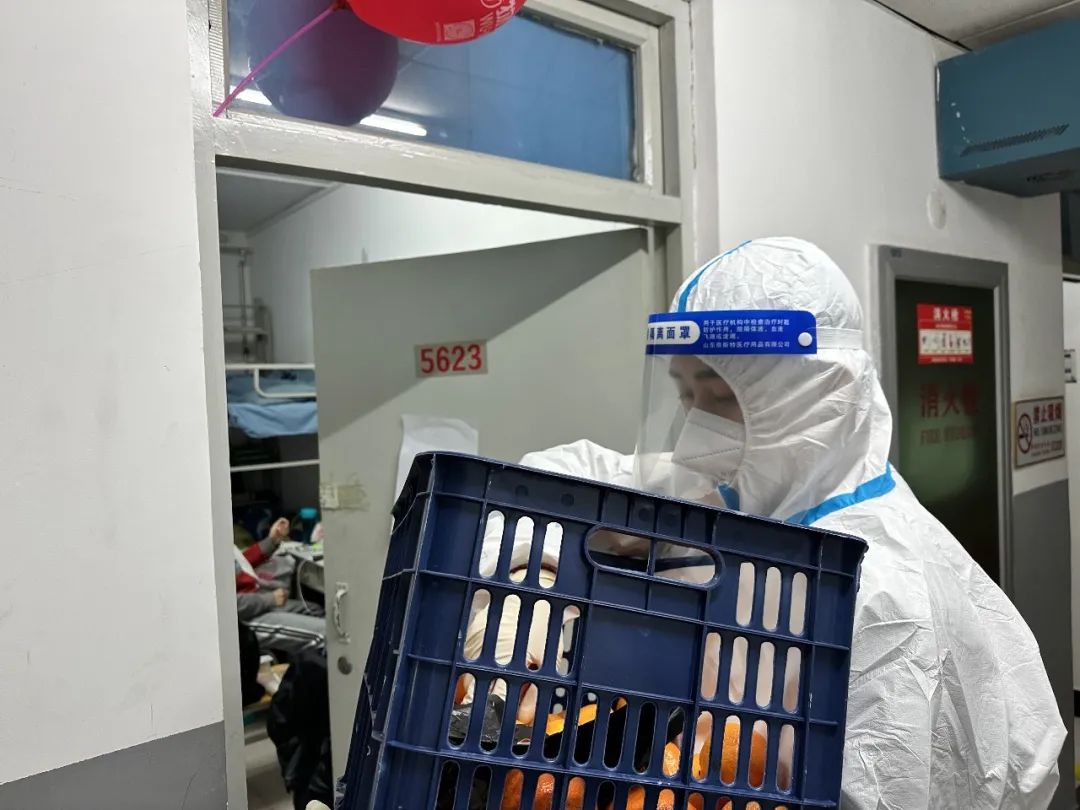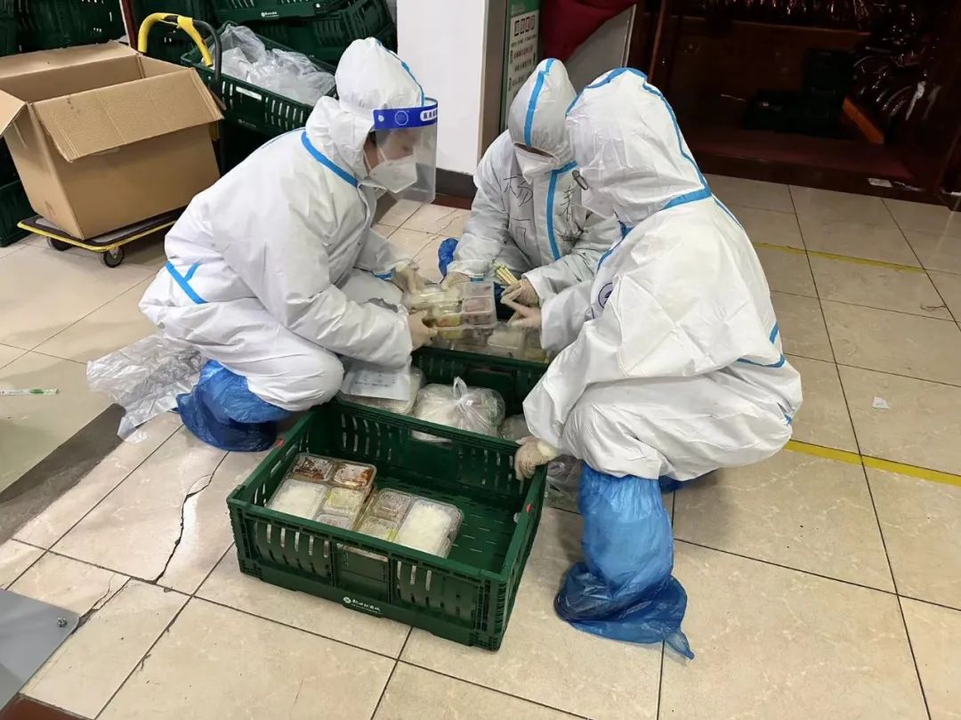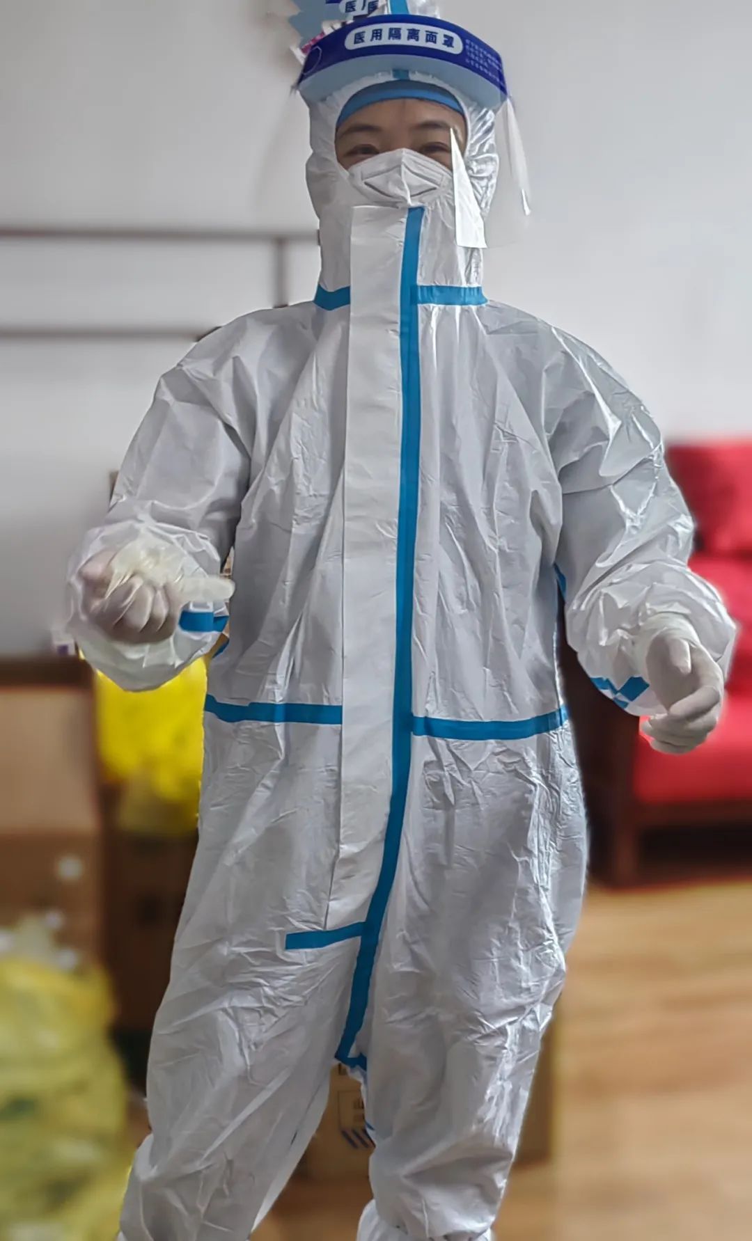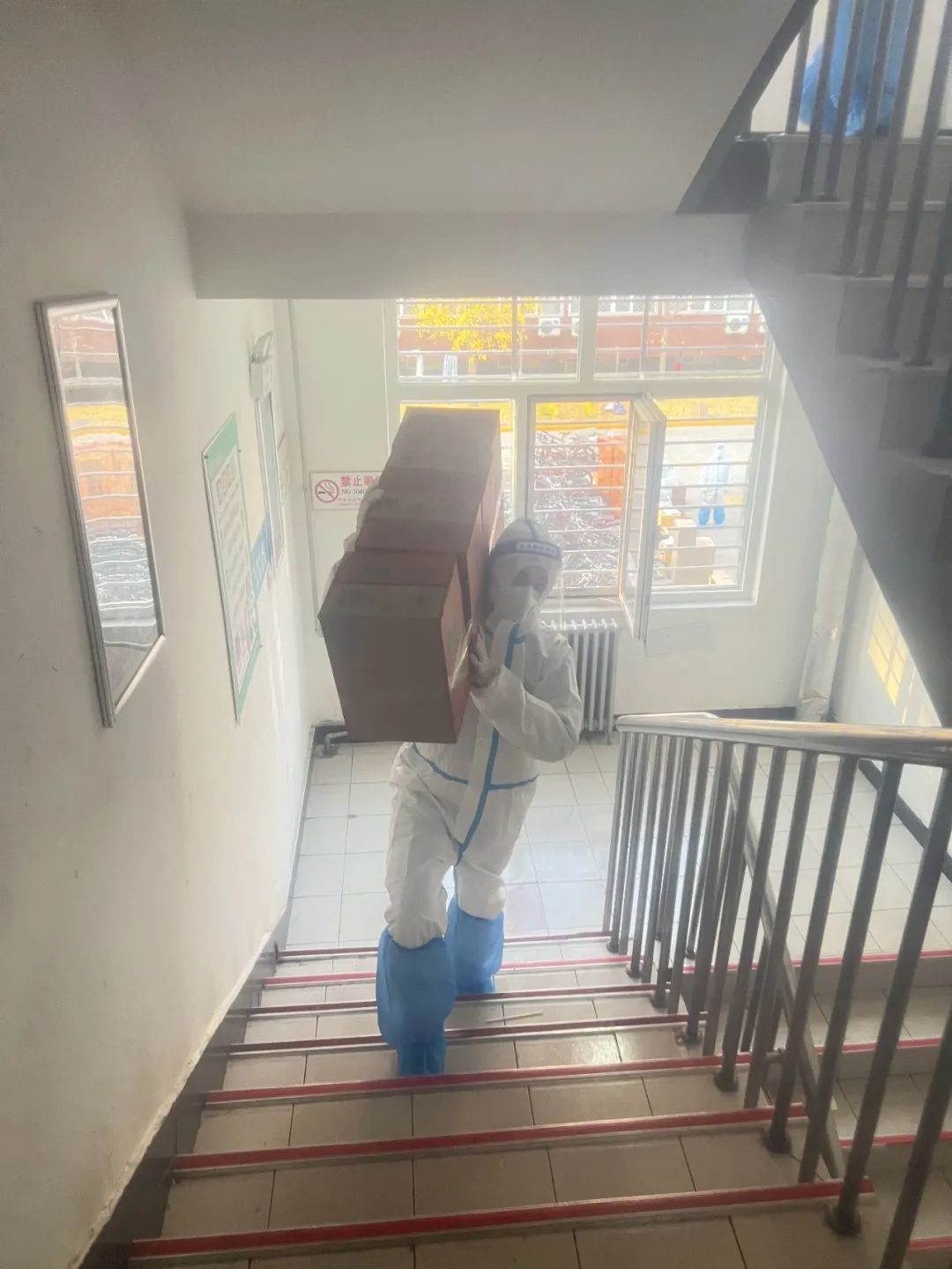 由于產(chǎn)后恢復(fù)不佳,她已經(jīng)許久沒(méi)有提過(guò)重物。但是一旦投入工作,她就忘了自己特殊的身體情況,手提、肩抗,一天上下樓20多趟,一頓餐送下來(lái),衣服都濕透了,隔離面罩上也布滿汗水呵氣凝成的水珠。為了讓學(xué)生早點(diǎn)吃上飯,她自己卻經(jīng)常顧不上吃飯。