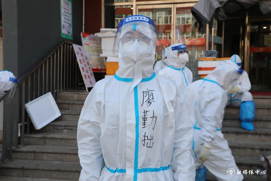 下午三點鐘吃完午飯,張冠軍給家人報平安。妻子心疼地嘮叨:“50多了,高血壓,還這么拼命?!睆埞谲娺B忙找補:“人家穆桂英53歲還掛帥征西呢,誰說俺男兒家不如女郎?。浚 彼f,核酸采樣小組里好多老師都是克服了家里這樣那樣的困難來的,有的家里孩子還小需要照料,有的剛剛失去了親人,也有像他一樣的“50后”“老一代”,“大家都在這個被認為‘高?!墓ぷ髦秀”M職守,我也為有幸參與到這樣一個群體里而欣慰”。同學們也把張老師化身“大白”的事,在群里廣而告之,表達著“師生同在、甘苦與共”的喜悅和感動。