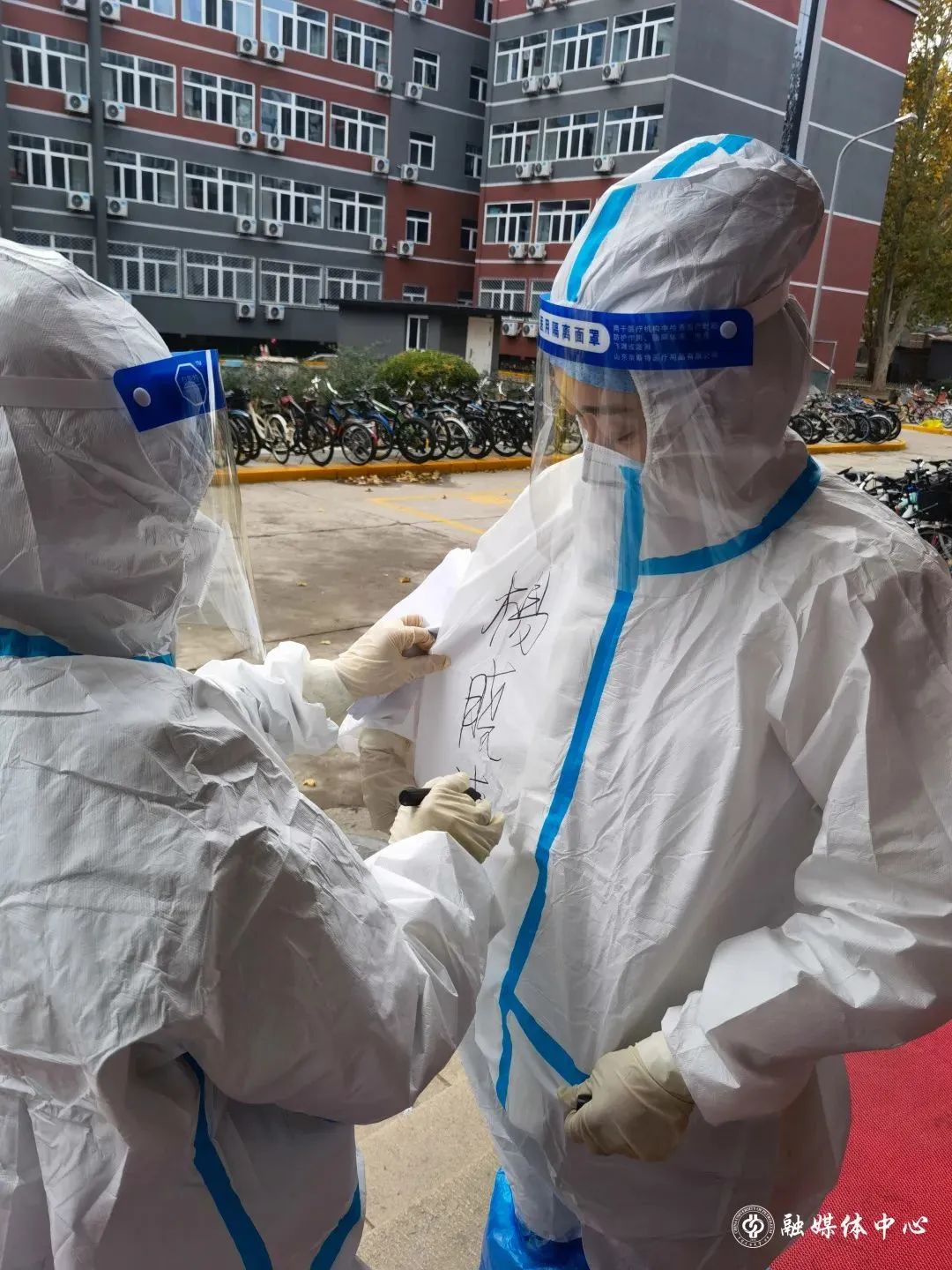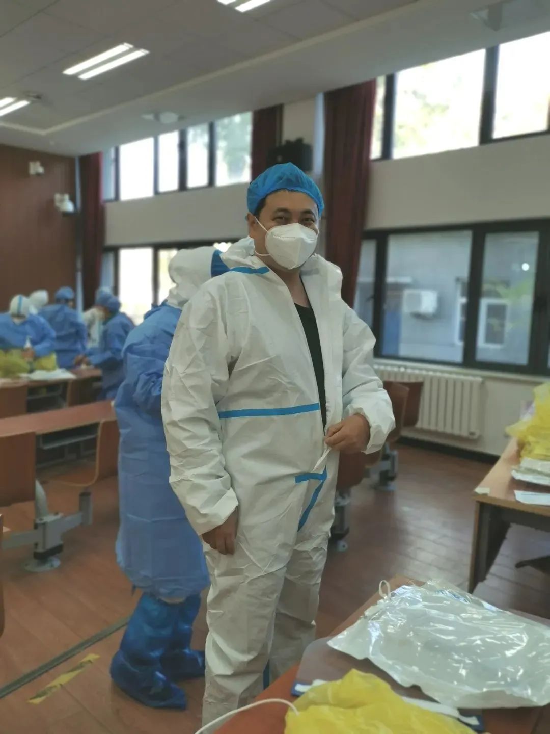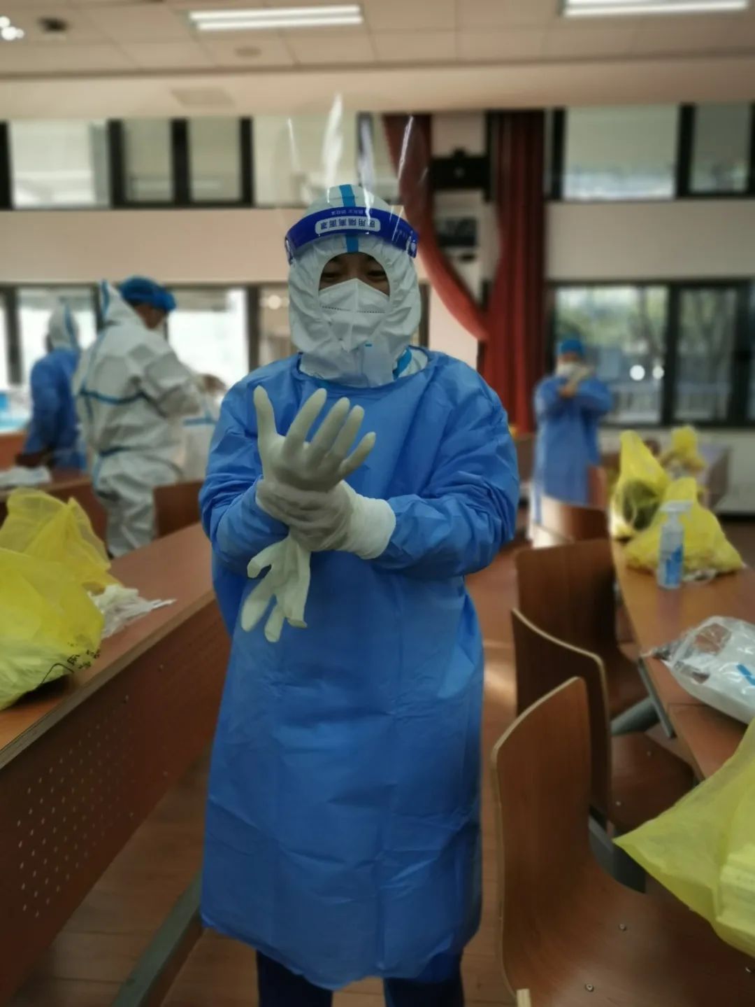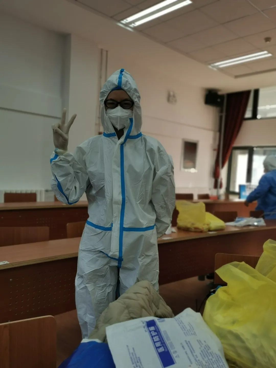 校機關的佟妍老師,家里老人剛剛回到老家,沒人照看孩子。得知學校突發疫情需要突擊隊員時,她立刻給老人買了返回火車票,當天入校加入戰“疫”。