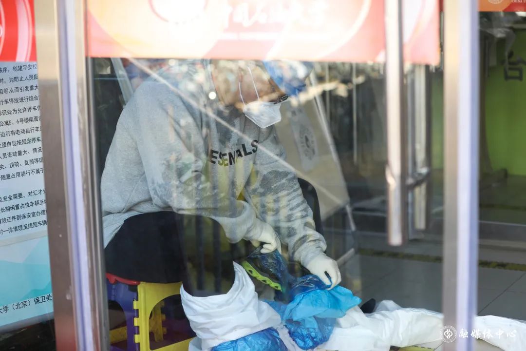 還有些志愿者協同校醫院醫務人員,連續為師生開展核酸檢測,經常是任務一完成就癱坐在地上,他們是真的累了。