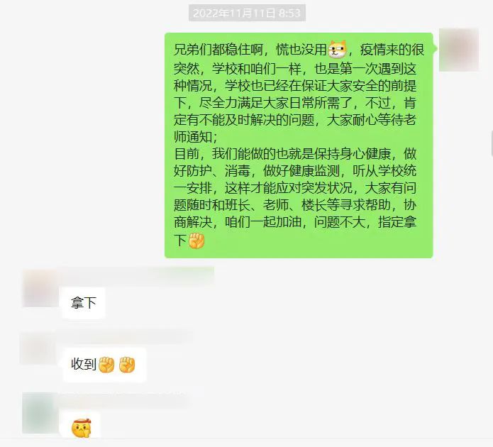 作為2021級的學業導師,趙振聰在志愿服務的間隙,還利用短暫的休息時間,堅持給班里的同學們開班會,安撫學生情緒,解答他們學業和生活上的困惑。
