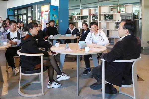 “校長(zhǎng)下午茶”活動(dòng)中,張來斌與同學(xué)們一起邊喝茶邊促膝長(zhǎng)談