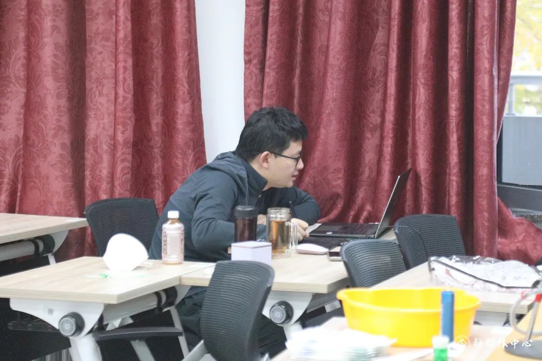 雖然志愿服務很忙碌,丁拼搏依然沒有耽誤正常的工作。分發早餐完成后,他馬上轉換身份,在某個學術會議上作了線上報告。