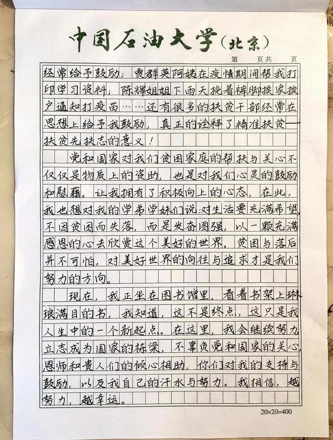 “其實(shí)我沒(méi)這么棒的。”喻鑫說(shuō)出自己的心聲,她希望弟弟和村里的孩子們要對(duì)生活充滿(mǎn)希望,珍惜當(dāng)下,努力奮斗,正如她信中對(duì)學(xué)弟學(xué)妹們的寄語(yǔ):“用一顆充滿(mǎn)感恩的心去欣賞這個(gè)美好的世界,對(duì)美好世界的向往與追求才是我們努力的方向。”