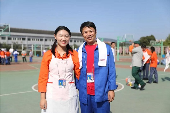 在中國建筑一局(集團)有限公司工作的父親劉寶全跟女兒石大經濟管理學院2018級本科生劉惠文,分屬不同的單位卻同屬8號方陣,分別是不同的身份但卻同時代表著產業工人、石油學子去闡釋“艱苦奮斗”的深刻內涵,分別站在不同的方陣點位卻拿著同樣的小紅旗做著同樣的動作,共同為祖國獻上祝福。