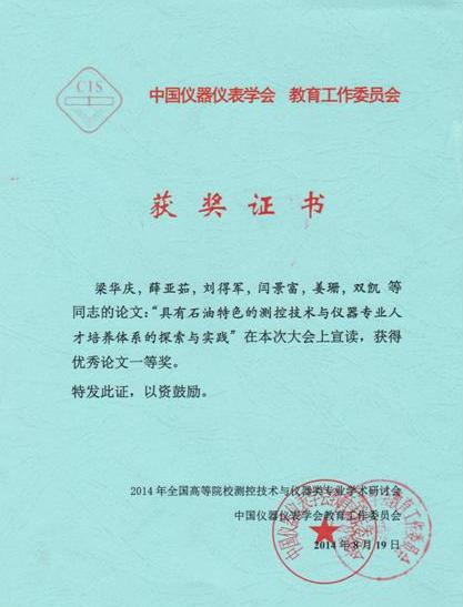 近日,由教育部高等學(xué)校儀器類專業(yè)教學(xué)指導(dǎo)委員會(huì)和中國(guó)儀器儀表學(xué)會(huì)教育工作委員會(huì)舉辦的“2014年全國(guó)高等院校測(cè)控技術(shù)與儀器類專業(yè)學(xué)術(shù)研討會(huì)”在杭州召開(kāi),石大測(cè)控系教師代表出席,并在大會(huì)上宣讀了題為“具有石油特色的測(cè)控技術(shù)與儀器專業(yè)人才培養(yǎng)體系的探索與實(shí)踐”的論文,經(jīng)過(guò)專家評(píng)議,榮獲大會(huì)優(yōu)秀論文一等獎(jiǎng)。