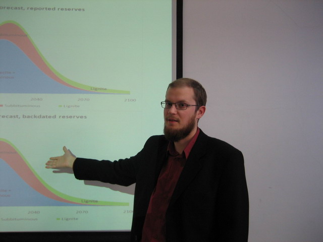 本次會議上,Mikael Hook博士介紹了他對全球煤炭資源的研究成果,認為全球煤炭資源很難持續百年,中國的煤炭峰值可能在不遠的將來來臨,煤炭資源不是緩解石油峰值問題的方案。代世峰教授介紹了中國煤炭資源的成藏過程、地理分布及資源品質情況。丁日佳教授介紹了中國煤炭工業現狀、中國煤炭工業面臨的形勢、中國煤炭工業發展的主要任務以及中國煤炭需求的預測方法。與會代表一致同意在煤炭峰值問題上應加強研究,并探討了今后進一步合作和交流等事宜。