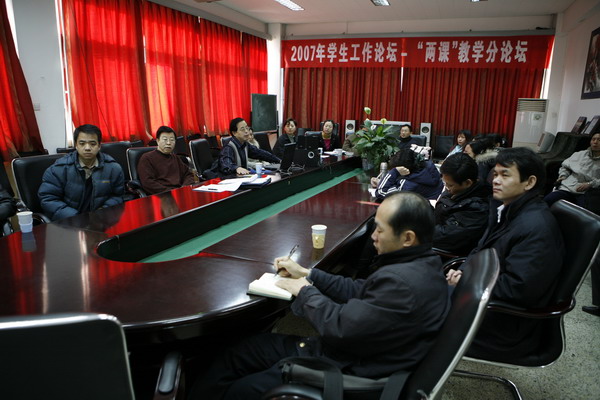 12月15日,2007年學生工作論壇思想政治理論課(以下簡稱“兩課”)教學分論壇在人文社科部會議室成功舉行。該論壇由人文社科部主辦,論壇主題是“總結經驗,剖析問題,探討對策”。人文社科部領導班子的全體成員和全體“兩課”任課教師出席了此次論壇。