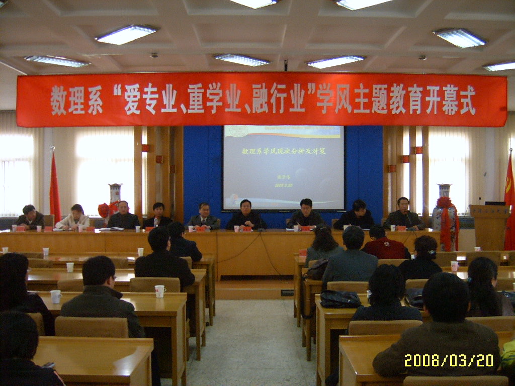 在此次學(xué)風(fēng)主題教育活動期間,數(shù)理系還將陸續(xù)舉辦“應(yīng)用數(shù)學(xué)專業(yè)培養(yǎng)方案座談會”、“導(dǎo)師座談會”、“學(xué)生座談會”,“新老教師教學(xué)經(jīng)驗交流會”、“英語四六級經(jīng)驗交流會”等系列活動。全面討論數(shù)理系應(yīng)用數(shù)學(xué)專業(yè)開辦以來所取得的經(jīng)驗、存在的問題與對策,激發(fā)學(xué)生的學(xué)習(xí)動力,形成若干切實可行的措施,激勵學(xué)生明確專業(yè)方向、端正專業(yè)思想,探索建立良好學(xué)風(fēng)的長效機制。同時積極培育“熱愛學(xué)生,為人師表,愛崗敬業(yè)”的良好教風(fēng),抓教風(fēng)促學(xué)風(fēng),形成教風(fēng)學(xué)風(fēng)的良好互動的局面。