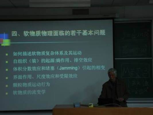 陸坤權(quán)研究員從我們?nèi)粘I钪衅毡榇嬖诘能浳镔|(zhì)展開報(bào)告,把比較難以理解的物理概念由淺入深,娓娓道來(lái)。并講述了目前世界各地在軟物質(zhì)領(lǐng)域的研究現(xiàn)狀和未來(lái)的發(fā)展前景展開報(bào)告,指出中國(guó)在軟物質(zhì)研究中存在的問(wèn)題。