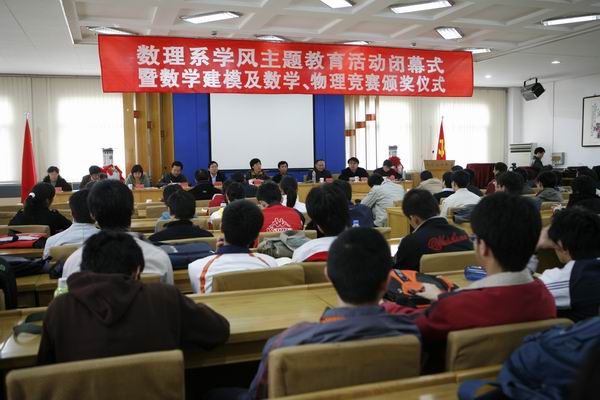 大會由數理系主任梁景偉主持。數理系黨總支書記孫為介紹了此次活動的開展情況,總結了應用數學專業開辦以來的經驗和教訓以及在探索建立學風建設的長效機制方面取得的初步成效。徐春明副校長宣讀了美國數學建模競賽、全國數學建模競賽、全國物理競賽獲獎同學名單。