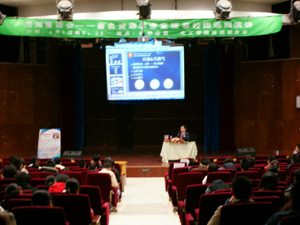童媛春先生與我校師生進(jìn)行了長(zhǎng)達(dá)三個(gè)小時(shí)的交流,闡述了能源在當(dāng)今世界的重要性,講述了能源從古代到現(xiàn)代的發(fā)展歷程,并論述了金融危機(jī)產(chǎn)生的原因和金融危機(jī)對(duì)能源領(lǐng)域潛在的威脅。他的論述從表面向本質(zhì)層層深入,并結(jié)合自己在國(guó)內(nèi)外的所見所聞、身行力踐,客觀而深刻的揭露了石油行業(yè)內(nèi)幕,在對(duì)比中讓同學(xué)們看到中國(guó)石油業(yè)還與世界先進(jìn)水平存在著一定差距,令同學(xué)們受益匪淺。同時(shí)童老師還虛心回答同學(xué)們提出的問(wèn)題,并幫助同學(xué)們進(jìn)一步剖析了“南海問(wèn)題”和“俄格沖突”。整個(gè)會(huì)場(chǎng)上下互動(dòng),氣氛熱烈,一陣陣掌聲把講座推向高潮。童老師還全面的講解了當(dāng)代大學(xué)生最關(guān)注的問(wèn)題––就業(yè)問(wèn)題,特別是金融危機(jī)時(shí)刻的就業(yè)問(wèn)題。童老師笑著說(shuō):“很高興能和同學(xué)們一起探討我們國(guó)家乃至世界所面臨的嚴(yán)峻問(wèn)題,看得到石油大學(xué)學(xué)生們都這樣的積極踴躍,真是我們國(guó)家的福氣啊!”
