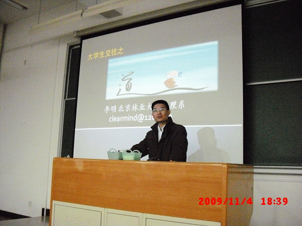 11月4日晚,機電工程學院特別邀請了北京林業大學的心理系教師李明博士在3教302為我校學生做了題為《大學生交往之道》的講座。我校心理咨詢中心主任張玉英老師也出席了這次講座。