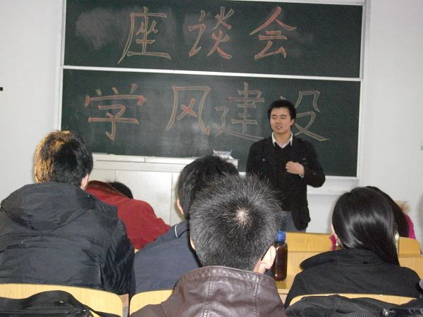 座談會由石工學(xué)院研究生輔導(dǎo)員肖坤主持,會場氣氛輕松而活躍。與會代表結(jié)合開學(xué)以來的學(xué)生工作實(shí)踐,從班級自身的基本現(xiàn)狀出發(fā),分別對班級“班風(fēng)、黨風(fēng)、學(xué)風(fēng)、考風(fēng)”中所患的各種“疑難雜癥”,診斷“病情”,開出“處方”,可謂仁者見仁,智者見智。會議討論結(jié)束后,石工學(xué)院研究生會主席張百靈同學(xué)做了總結(jié)發(fā)言,并生動形象地稱此次座談會是一次務(wù)實(shí)的為班級建設(shè)“求醫(yī)問藥、治病救人”的專家會診。